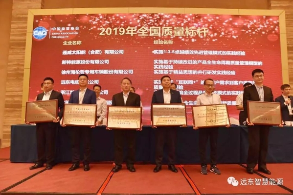 李林(右三)代表远东电缆领取“2019年全国质量标杆”称号